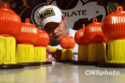 2月23日,在位于北京鳥巢旁的巧克力夢公園內(nèi),制作大師正在用巧克力制作燈籠,以此迎接即將到來的元宵佳節(jié)。據(jù)了解,在元宵節(jié)期間,將有來自護國寺小吃的廚師在現(xiàn)場教民眾做巧克力元宵,還會有傳統(tǒng)的猜燈謎等活動。中新社發(fā) 富田 攝