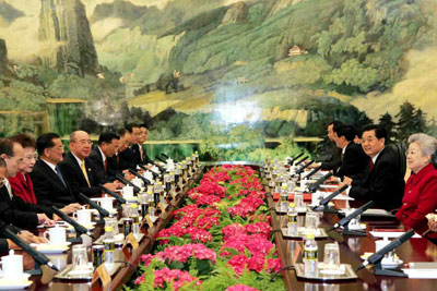 2005年4月29日下午,中共中央總書(shū)記胡錦濤在人民大會(huì)堂福建廳和中國(guó)國(guó)民黨主席連戰(zhàn)在北京舉行正式會(huì)談。胡錦濤說(shuō),兩岸關(guān)系發(fā)展正處在一個(gè)關(guān)鍵時(shí)期。構(gòu)建和平穩(wěn)定發(fā)展的兩岸關(guān)系,對(duì)兩岸同胞有利,對(duì)中華民族的長(zhǎng)遠(yuǎn)發(fā)展有利。我們兩黨應(yīng)該為此作出積極努力。胡錦濤就發(fā)展兩岸關(guān)系提出4點(diǎn)主張。