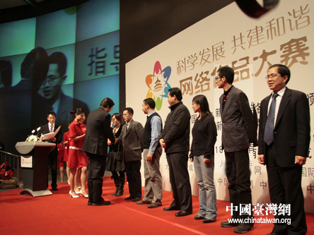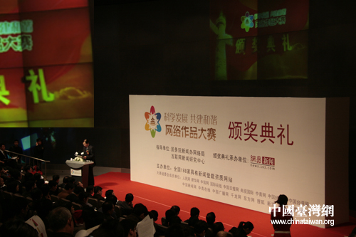 中國臺灣網(wǎng)12月18日北京消息 備受廣大網(wǎng)民關(guān)注的“科學(xué)發(fā)展 共建和諧”網(wǎng)絡(luò)作品大賽,今天下午在北京中華世紀壇舉行頒獎典禮。國務(wù)院新聞辦公室副主任蔡名照出席典禮并致詞。