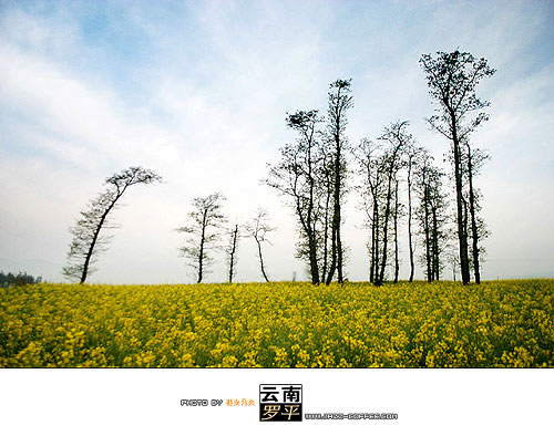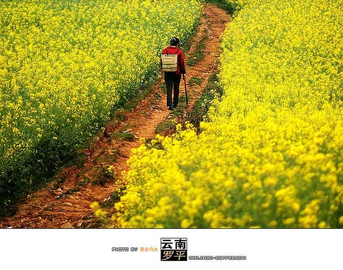 攝影:羅平地處溫濕地帶,陰雨天較多,這給拍攝帶來一定難度。因為拍攝油菜花一般需要較明亮的光線,這樣才能表現出它的鮮亮和艷麗。切勿逆光拍攝,尤其是當你面對大場景時,因為這樣拍出的油菜花會顯得灰暗,毫無生機。一般采用順光或側光,拍出的照片亮麗明快,層次分明,色彩飽和度高。