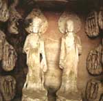 寶頂山摩崖(石窟)石刻距大足縣城東北15千米,石刻創始人為宋蜀中名僧趙智鳳,建于南宋淳熙六年至淳祐九年(1179—1249年),歷時70多年,石刻共13處,造像數以萬計,以大佛灣和小佛灣規模最大。寶頂山是佛教圣地之一,有“上朝峨嵋,下朝寶頂”之說。